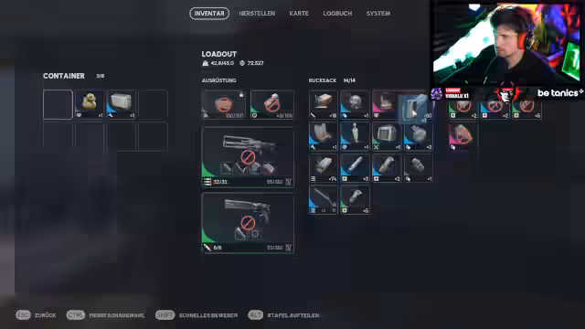 06:43:16Ein zentrales Thema ist das Craften von Gegenständen und der Fortschritt im Projekt Expedition. Der Streamer benötigt einen Luftbefeuchter, um eine Aufgabe abzuschließen, und geht daher gezielt auf die Suche nach diesem Gegenstand. Das Crafting von Bandagen und die Verwaltung des Inventars sind ebenfalls wichtig. Es wird die Balance zwischen Platz im Inventar und dem Wert von Ausrüstung thematisiert, die den Erfolg in der Runde beeinflusst.