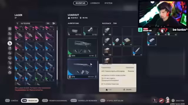05:43:18Für die anstehende Runde wird das Loadout angepasst. Der Streamer entscheidet sich dafür, den 'Westen' zu 'trippen', was eine taktische Änderung bedeutet. Er plant, auf bestimmte Skills wie den 'Combat Roll' zu achten, der keine Ausdauer verbraucht. Gleichzeitig müssen technische Probleme mit der Maussoftware gelöst werden, bevor es weitergehen kann. Das Team plant, den Bunker erneut aufzusuchen und sucht nach neuen Gegnern.