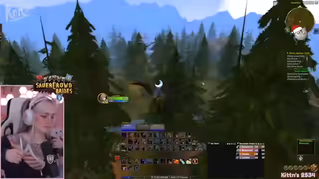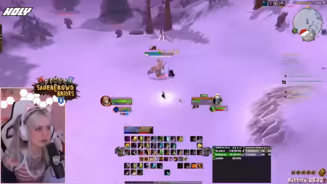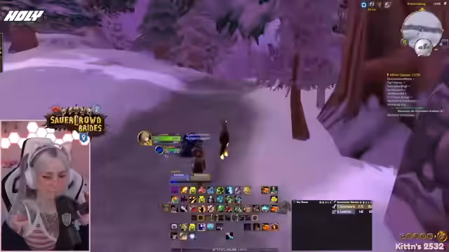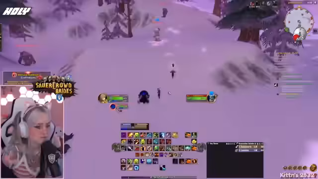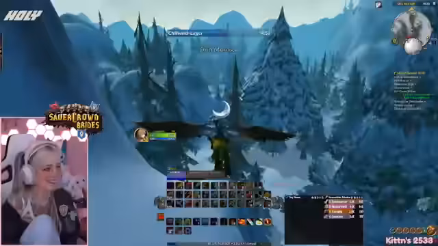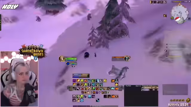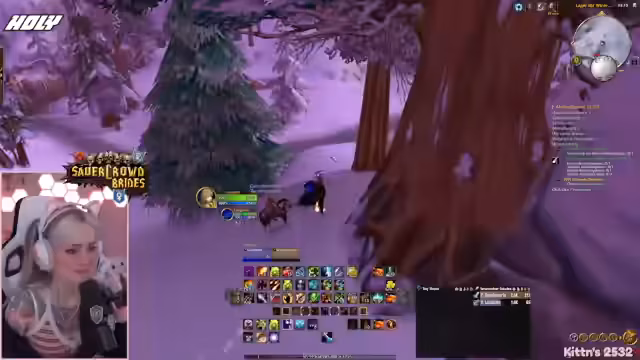 03:19:14Die Protagonistin ist auf der Suche nach Yetis für eine Quest in Winterspring und untersucht eine Höhle, die von einem anderen Spieler bereits geleert wurde. Nachdem sie feststellt, dass der Bereich leer ist, entscheidet sie, eine andere Quest mit Yetis zu machen. Beim Farmen stößt sie auf Elite-Yetis und versucht, diese zu jagen, während sie über den respawnenden Nachschub und die Herausforderungen bei der Suche nach den richtigen Monstern spricht. Sie trifft auf Schwierigkeiten, da benötigte Mobs nicht spawnen und andere Spieler dieselben Ziele haben.