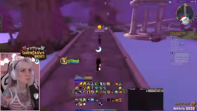02:55:25Ein geplanter Grupp-Port zum Erhalt eines mächtigen Buffs misslingt aufgrund von Missverständnissen und Verzögerungen. Der versprochene Port kommt nicht zustande, was zu einem zeitlichen Verlust und Frustration führt. Die Streamerin bemerkt, dass sie den geplanten Zeitplan nicht einhalten kann und beschließt, das Problem ruhen zu lassen, um nicht weiteres Grinding zu verzögern. Der Fokus verlagert sich zurück auf das Questing in Winterspring, um dort Erfahrungspunkte zu sammeln.