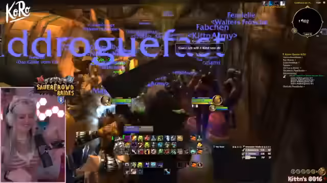 01:34:36Im Stream geht es hauptsächlich um das Questing und die damit verbundenen Herausforderungen. Die Streamerin sammelt für eine Stormwind-Quest noch fast 7000 Erfahrungspunkte und erwägt, mit einer anderen Spielerin gemeinsam in das Gebiet Goldhain zu ziehen. Während des Spielens werden viele Items als Müll identifiziert und gelootet, was zu einem vollen Inventar und einem gewissen Frust führt, da Platzmangel ein ständiges Problem ist. Der Chat interagiert stark mit dem Begriff 'Ragebait', was die allgemeine Stimmung bei der Jagt auf mäßigen Loot widerspiegelt.