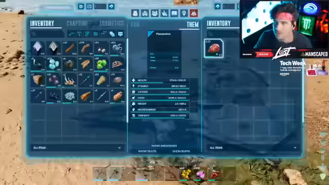 02:37:01Der Streamer versucht erneut, einen Pteranodon zu zähmen, wobei er mehr über das Taming-System lernt. Er erfährt, dass die Anwendung von Narcotics wichtig ist, um das Tier lange genug betäubt zu halten, und dass die Menge an Futter entscheidend ist. Gleichzeitig muss er seine eigene Hitze- und Durstverwaltung optimieren, da er im heißen Klima des Spiels ständig leidet. Er beginnt, sein Wissen über die Tierwelt und ihre Stärken zu erweitern, um effektiver zu agieren.