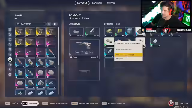 02:17:17Während des Gameplay beschwert sich der Streamer über fehlerhafte Spielmechaniken und Drohnen, die ihn ohne ersichtlichen Grund angreifen. Er sammelt Beute, wie einen Schlüssel für Stella Montes, und trifft auf einen anderen Spieler. Er vergleicht das Spiel mit Arkanor und äußert Frustration über unfaire Situationen, in denen Gegner einen scheinbaren Vorteil durch Bugs oder cheaterähnliche Verhalten haben. Er beendet einen Spielzug, der ihm nichts gebracht hat.