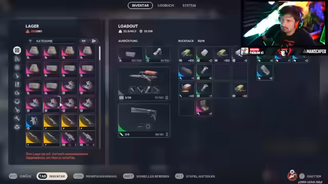 00:12:20Der Streamer beginnt den Sonntag mit einem vollen Stash und der Notwendigkeit, Aufräumarbeiten zu erledigen, die er vom Vortag aufgeschoben hat. Er beantwortet Fragen zum Spiel, insbesondere zur Rentabilität und zu spezifischen Quests, bei denen er sich nicht mehr an Details erinnern kann, da er die Quests schnell durchgespielt hat. Ein wichtiges Thema ist das bevorstehende Bunker-Event, das in zwei Minuten startet. Der Streamer kritisiert, dass dieses Event nur selten auftritt, etwa alle zehn Stunden, was er schade findet, da es eigentlich sehr unterhaltsam ist. Im Gegensatz dazu hält er das elektromagnetische Sturm-Event für irrelevant und nervig, da es außer zusätzlichen, lästigen Arcs kaum etwas bietet und Spieler sogar 'one-shottet'. Er bereitet sich darauf vor, das Bunker-Event solo anzugehen und hofft, mit anderen Solospielern die Aufgabe zu meistern. Dabei teilt er auch seine bevorzugten Spieleinstellungen mit, die auf das Nötigste reduziert sind, um eine optimale Performance zu gewährleisten.