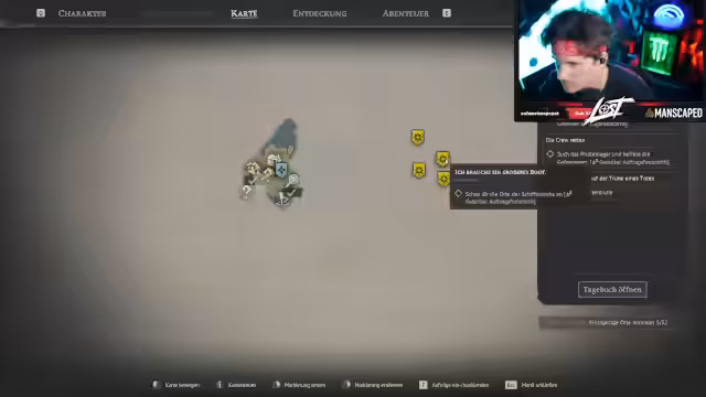 01:20:25Der Streamer kämpft mit verschiedenen wilden Tieren auf der Insel, besonders mit starken Ebern, die als schwierig einzuschätzen sind. Während der Erkundung stößt er auf eine alte Truhe mit Belohnungen, darunter eine Steinpickax und Pläne für neue Bauelemente wie Blätterdächer. Er beginnt auch, der Quest 'Die Crew retten' zu folgen, die ihn zum Bau eines größeren Bootes führt. Die Erstellung von Rüstung und verbesserten Waffen steht weiterhin im Fokus.
