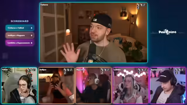 03:18:10Die erste Runde der Summen-Kategorie beginnt. Ein Mitspieler startet mit dem Summen. Sein Team muss erraten, um welches Lied es sich handelt. Der Streamer fungiert als Moderator. Der erste Mitspieler hat Schwierigkeiten mit der Melodie und sucht nach Rhythmus. Sein Team, bestehend aus Tim und Felika, versucht das Lied zu identifizieren. Die Aufregung und das Timing werden thematisiert, während die Runde läuft und ein Punkte-System eingeführt wird.