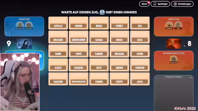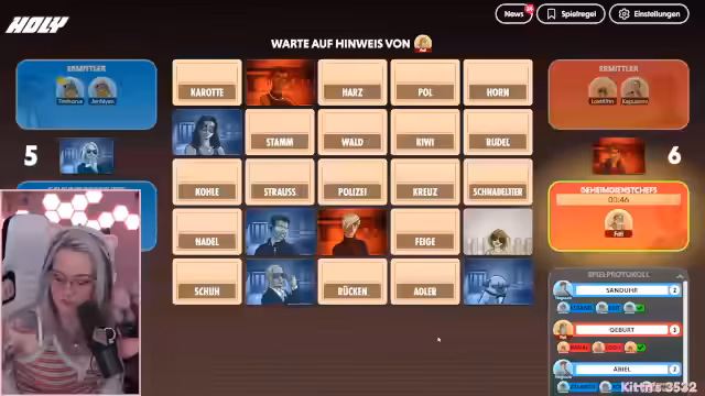 04:45:45Die Rolle des Geheimdienstchefs wird erläutert. Diese Person muss die Begriffe auswählen, die für die gegnerische Team rot sind, und einen passenden Oberbegriff finden. Die Streamer diskutieren den Spielverlauf und versuchen, die Begriffe wie Schlachthaus, Bulle oder Luft zu erraten. Sie reflektieren über die Schwierigkeit, die richtigen Begriffe zu treffen und wie man am besten agiert.