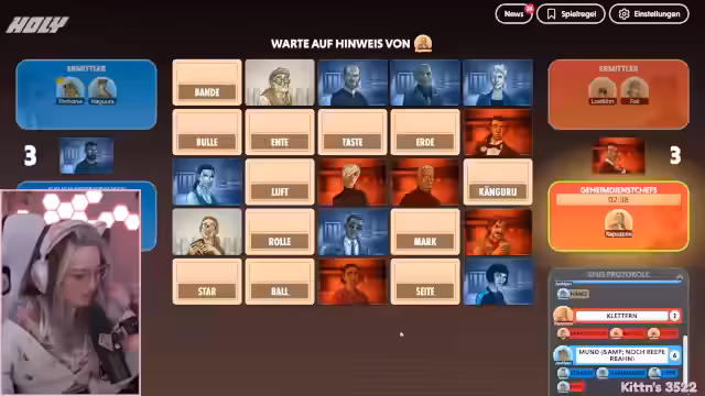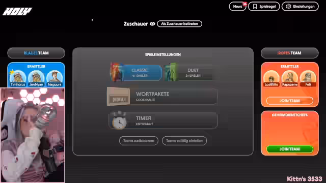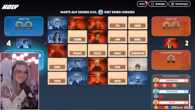 03:48:40Als direkte Alternative wird das Spiel 'Codenames' vorgeschlagen und angenommen. Schnell wird eine Lobby erstellt, in der sich die Teilnehmer in zufällige Teams aufteilen. Die Streamerin erklärt kurz die Regeln des Spiels, bei dem es darum geht, Begriffe durch Oberbegriffe zu raten. Die Runde beginnt mit den ersten Hinweisen und den Versuchen der Teams, die gesuchten Wörter zu finden.