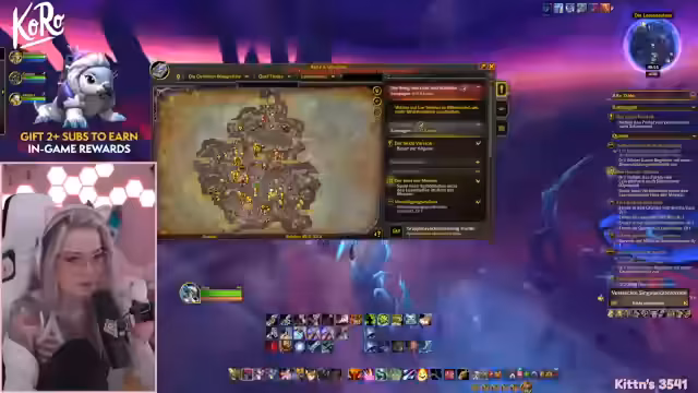 01:15:30Das gemeinsame Leveln wird in der Zone 'Voidstorms' fortgesetzt. Die Streamerin und ihr Begleiter konzentrieren sich auf die dortigen World Quests, um den Ruf für die Ausrüstung zu steigern. Es kommt zu einem schwierigen Kampf gegen ein Rare, das besonders viel Leben hat. Trotz anfänglicher Schwierigkeiten wird es besiegt. Anschließend wird der Fortschritt im Jagd-System gezeigt und die Streamerin betont die Wichtigkeit, die Blasen an den Altären abzugeben, um Belohnungen zu erhalten und den Ruf zu erhöhen.