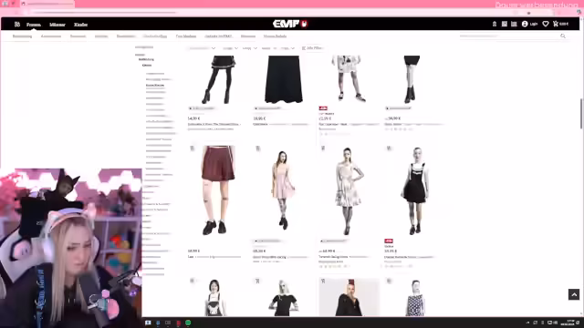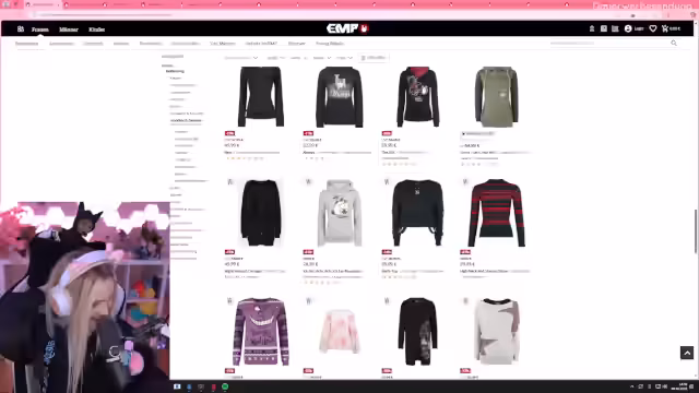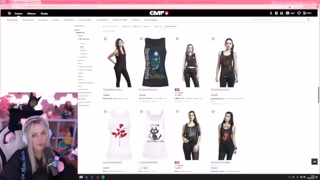 01:42:23Es wird eine Partnerschaft mit EMP (Freezing World) angekündigt, die mit positiven Erinnerungen an die Emo-Zeit verbunden ist. Es gibt einen Rabattcode "Lost Kitten", mit dem man 20% auf Einkäufe ab 40 Euro und zusätzlich 5% auf bereits reduzierte Artikel sparen kann. Die Community wird ermutigt, den EMP-Link im Chat zu nutzen, um den Streamer zu unterstützen und gleichzeitig von den Rabatten zu profitieren. Es wird ein Geschenk von Dovi gezeigt, ein Pummeluff-Pokémon, das aber nicht die Lieblingswahl ist. Es wird nach Inspiration für Messe-Outfits gesucht, wobei Kleider, Leggings und andere Kleidungsstücke in Betracht gezogen werden. Es werden verschiedene Kategorien wie Premium, Red Rock Rebel und Gothic durchstöbert.