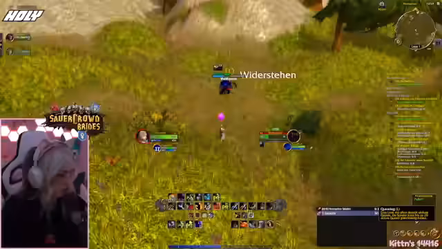 10:23:20Die Zusammenarbeit in der Gruppe ist ein zentrales Thema. Es kommt zu kleinen Missverständnissen bei der Questabgabe und Annahme, wobei die NPCs teilweise für Verwirrung sorgen. Die Streamerin erwähnt, wie die Synchronisation im Team funktioniert und wie das Addon Guildmap hilft, das HP (Lebenspunkte) von Gildenmitgliedern im Blick zu behalten, was die Gruppenkommunikation verbessert.