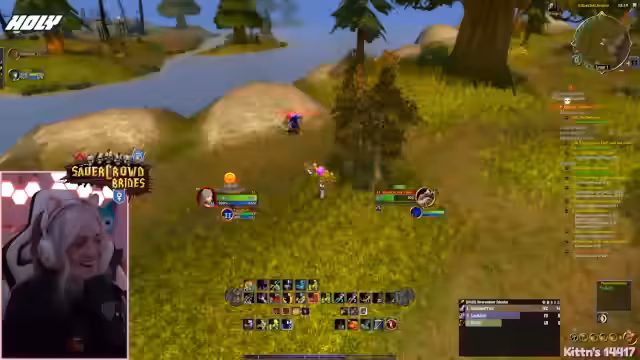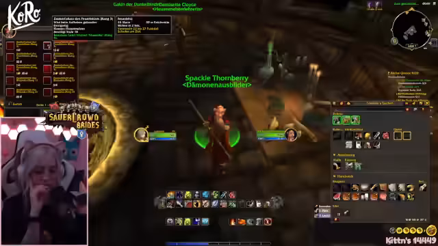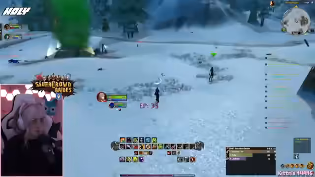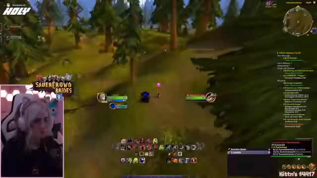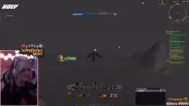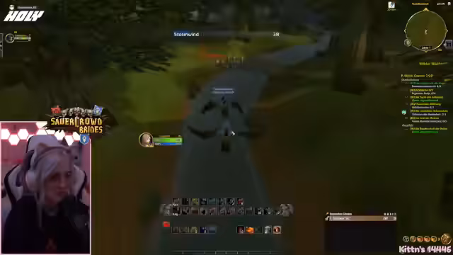 00:36:40Während des Streams treten wiederholt technische Probleme auf, wie Display- und Audiofehler, die den Spielablauf kurzzeitig unterbrechen. Gleichzeitig gestaltet sich das Zusammenspiel mit anderen Spielern dynamisch. Es kommt zu spontanen Portaktionen durch Helfer wie 'Wildmax' und 'Excel'. Die Streamerin gibt Hilfe, indem sie Heiltränke und Ausrüstung an Mitspieler weitergibt, während sie sich selbst auf die Navigation und das Abschließen der Quests in Ironforge konzentriert.