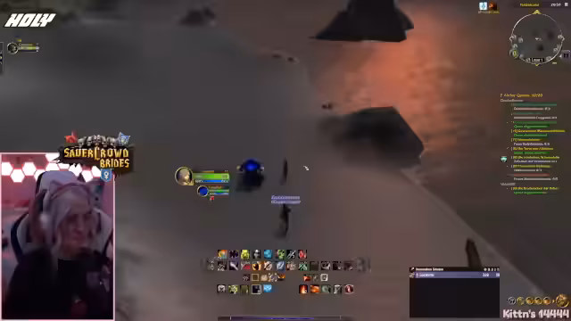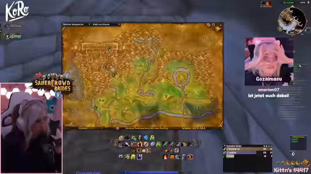 03:27:28Die Streamerin ist Teil einer kleinen Gruppe, die sich in Loch Modan befindet, und koordiniert die Aktionen der Spieler. Sie bittet die Gruppe, über Probleme oder Bosskämpfe zu schreien, um sich gegenseitig zu unterstützen. Es wird über die Weiterreise zu anderen Levelgebieten wie Tanaris gesprochen, wobei die Route und der Treibstoff erwähnt werden. Die Gruppe wird angewiesen, sich auf eine bestimmte Position zu bewegen, während die Streamerin einige Gegenstände abgibt und den Überblick behält.