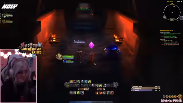 11:41:52Die Streamerin und ihre Gruppe haben gestern gegen Abend um 16-17 Uhr mit dem Spielen begonnen. Ziel ist es, durch effizientes Grinden und Quests möglichst schnell wieder auf Level zu kommen. Sie haben festgestellt, dass die Quests angenommen werden müssen, um den Dungeon Todesminen zu betreten, und dass die Level-Zeit pro Spielstunde zwischen 2 und 3 Stunden liegt. Sie sind zuversichtlich, dass sie auch morgen mindestens 5 Level erreichen werden.