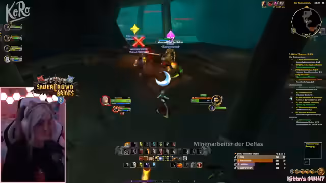 12:42:01Der erste Boss in Deadmines wird fokussiert. Die Anweisung ist, einen niedrigen Golem zuerst zu eliminieren, bevor der Totenkopf-Marker genutzt wird. Die Druide betont, dass sie die Verjüngung-Hots durchticken lassen muss, um Mana zu sparen, und nicht zu viel overheilen soll. Der Kampf wird als erfolgreich und 'mega' beschrieben, und die Streamerin merkt an, wie unterschiedlich sich Dungeon-Erlebnisse anfühlen, je nach Gruppe und deren Fähigkeiten.