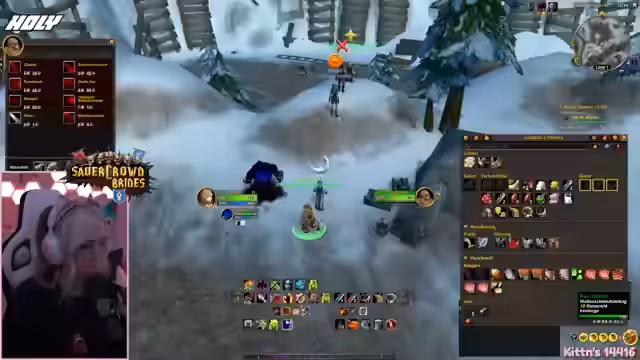 01:47:55Zu Beginn des Streams treten massive technische Schwierigkeiten auf. Der Streamer stößt auf unzählige Probleme, darunter Instabilitäten im Overlay, ein Absturz des Add-ons und eine nicht funktionierende Benutzeroberfläche, die alles klein und unleserlich anzeigt. Dies führt zu einem erheblichen Handicap im Gameplay. Währenddessen wird im Spiel versehentlich eine zusätzliche Gruppe von Gegnern gepullt, was zu einem chaotischen Kampf führt, den der Streamer aber letztendlich gemeistert hat.