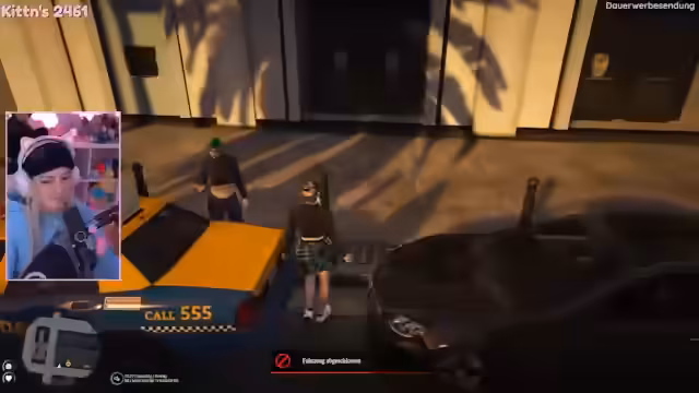 05:46:27Nach dem erfolgreichen Einkaufen wird der Taxi-Dienst angetreten. Die erste Kundin, 'Katana', wird an einem NPC-Friseur abgeholt, da sie sich in der Stadt nicht auskennt. Es entwickelt sich ein lockeres Gespräch, bei dem der Streamer seine Tätigkeit als Taxifahrer erklärt und die Kundin über die Weiterleitung an einen besseren Friseur per Dispatch informiert.