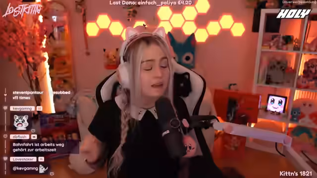 03:36:56Die Streamerin plant, Just Dance auf der Konsole zu spielen, aber ihre Katze Happy schläft auf dem Sofa, was eine Herausforderung darstellt. Sie versucht daher, Happy zu verschieben oder im Sitzen zu spielen. Sie erwähnt auch ein Problem mit der Kamera-Erkennung für das Spiel. Währenddessen macht sie sich Sorgen über ihren abgefallenen Fingernagel, den sie für den nächsten Tag wieder ankleben möchte, und unterhält sich mit der Community über die Verlosungsergebnisse und technische Probleme.