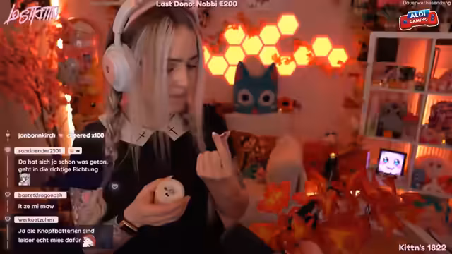 01:34:54Die Streamerin zeigt verschiedene Halloween-Deko-Elemente wie Kürbisse und Blätterdekoration. Sie stellt fest, dass sie für das kommende Jahr mehr Deko benötigt und darüber nachdenkt, die aktuelle Deko möglicherweise auch im November weiter zu verwenden. Dabei kommen technische Probleme mit den Lichterketten zur Sprache, da die Batterien schnell leer sind und teuer für den Austausch wären. Sie erwähnt auch, dass ihre Katze an der Deko knabbert, was sie als frech bezeichnet und wachsam beobachtet werden muss.