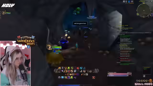 04:22:24Nachdem die Streamerin den Buff in Stormwind verpasst hat, bietet ein Gildenmitglied, Reapers, Hilfe an. Er kann ein Portal von Booty Bay nach Stormwind stellen, so dass sie es noch nutzen kann. Der Streamer entscheidet, stattdessen nach Booty Bay zu teleportieren. Die Server-Situation mit sechs Layern wird angesprochen, und sie macht sich bereit, in die Quests einzusteigen.