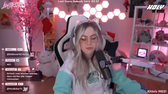 00:11:49Der Stream beginnt mit einer herzlichen Begrüßung des Publikums, wobei Streamerin lostkittn ihren unregelmäßigen Lebensstil thematisiert, der zu unregelmäßigen Schlafzeiten und mangelndem Zeitgefühl führt. Nachdem sie sich bei der Gemeinschaft für die Unterstützung bedankt, verkündet sie, dass die Bewerbungsphase für die Teilnahme an einem gemeinsamen WoW-Projekt beendet ist. Sie gibt an, Nico Baker TV für eine Kooperation ausgewählt zu haben, dessen Engagement und positive Bewerbung sie hervorhebt, und drückt ihre große Hoffnung aus, dass dieser Vorschlag angenommen wird.