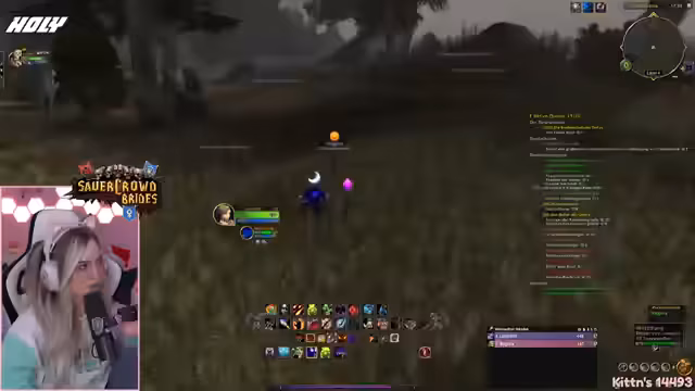 04:08:35Die Streamerin konzentriert sich wieder auf das Questing, erwähnt aber immer wieder Probleme mit dem Inventar, das voll ist. Sie muss wichtige Buffs abholen, verpasst aber den Booty-Bay-Buff, da sie neu angefangen hat. Sie ruft im Chat nach Taschen und Hilfe für das Leveling und ermahnt sich selbst, besser auf Buffs und Essen zu achten.