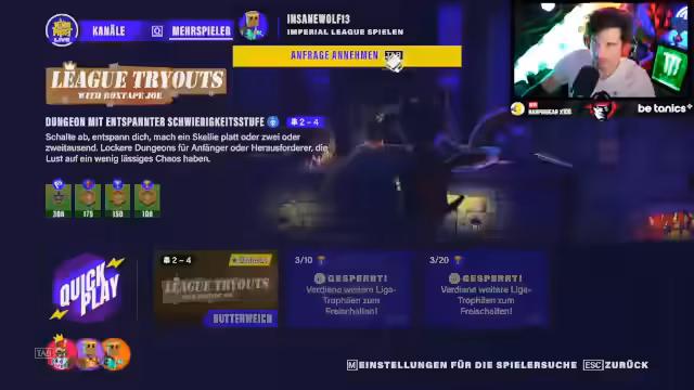 01:46:13Der Stream wechselt zu 'King of Meat', einem Dungeon-Koop-Spiel, das bis zum 17. November kostenlos auf Steam spielbar ist. Die Spieler warten auf ihre Koop-Partner Dirty Devil und Kler, um gemeinsam Dungeons zu erkunden. Es wird erklärt, dass man im Spiel durch Leveln neue Fähigkeiten, Outfits und Waffen freischalten kann. Die Anpassungsmöglichkeiten der Charaktere werden gezeigt, wobei ein Spieler stolz sein selbstgebasteltes Horn und Glubschaugen präsentiert. Es wird erwähnt, dass man Dungeons entweder solo oder im Koop-Modus spielen kann und dass es auch Community-Dungeons gibt, die unter dem Hashtag #CommunityBuilds gebaut werden können. Die Spieler passen ihre Charaktere weiter an und bereiten sich auf den gemeinsamen Dungeon-Run vor, wobei sie über die Schwierigkeitsstufen und die Notwendigkeit, versteckte Truhen zu finden, sprechen.