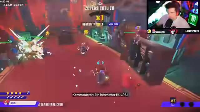 05:59:36Die Spieler befinden sich in einer Situation ohne Legspawn und müssen taktisch passiv spielen. Es wird über Geräusche und die Position von Gegnern spekuliert, wobei taktische Zip-Lines genutzt werden. Unerwartete Boosts und Action-Direktionen sorgen für Verwirrung. Während eines Kampfes kommt es zu einem unerwarteten Tod des Streamers, der sich selbst getötet zu haben scheint, während ein anderer Spieler von 'Mr. Floppy Lips' getötet wird. Die Möglichkeit, Hacker zu melden, wird diskutiert, da die Todesursachen unklar sind und auf einen möglichen Hack oder Bug hindeuten.