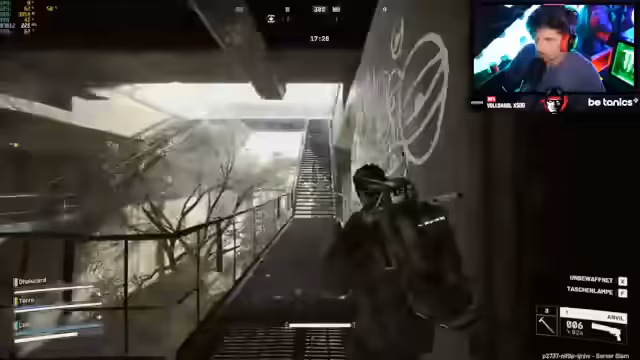 01:35:30Nachdem das Team einen Kameraden erfolgreich gerettet hat, konzentriert es sich auf die Extraktion. Der Streamer erwähnt humorvoll einen Sound-Alert, der von einem Chat-Teilnehmer stammt und der nun im Spiel verwendet wird. Trotz der angespannten Situation und der Gefahr, von hinten beschossen zu werden, bleibt die Stimmung locker. Das Ziel ist es, das Spiel zu beenden und das gesammelte Equipment sicher zu bergen.
