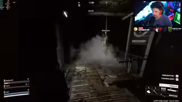 00:55:40Der Streamer stellt seine Grafikeinstellungen auf Ultra, um die bestmögliche Performance zu testen. Er berichtet von hohen FPS-Werten, auch wenn die Grafik auf dem Maximum läuft. Währenddessen treten erste Gegner auf und das Plündern der Waffenkisten beginnt. Ein Teammit gerät in eine schwierige Situation an einer sich schließenden Tür, und das Team arbeitet zusammen, um ihn zu retten und sicher aus der Map zu extrahieren.