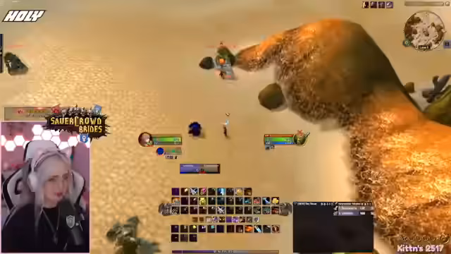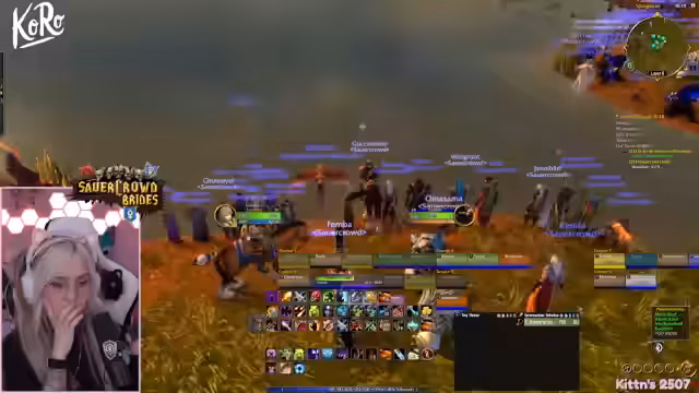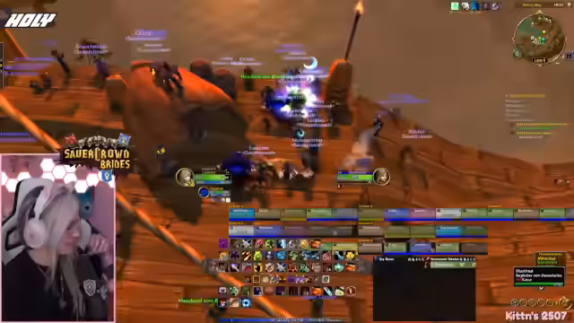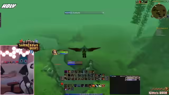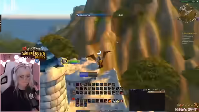 01:56:41Ein erfolgreicher Princess-Dungeon-Run wird absolviert. Der Streamer ist enthusiastisch, wie schnell sie mit fünf Leuten durchkommen, auch wenn er Level 60 nicht mehr schafft. Es gibt eine Diskussion über Loot, wie das Schwert 'Fliss' und den Priesterstab, der illegalerweise von 'Laran' gejobbt wurde. Auch die XP-Fortschritte von Kitten und der Streamer werden thematisiert.