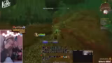 07:33:55Die Gruppe ist im Teufelswald unterwegs und muss auf Elite-Mobs und besondere Gefahren wie knockbackfähige Gegner sowie giftige Schweine aufpassen. Der Weg ist aber insgesamt einfacher als befürchtet. Patrouillen, wie eine grüne Larve, werden umgangen und der Streamer äußert seine Erleichterung, nicht alleine in diesem Gebiet questen zu müssen. Bei der Looting-Aktion werden auch Spinnenbeinspitzen gefunden, die nicht benötigt werden.