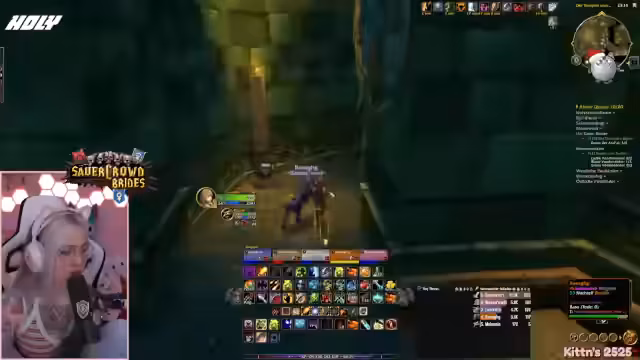 05:36:20Die Streamerin verteidigt die Klasse des Priesters gegen Kritik im Chat, die besagt, die Klasse sei langweilig zu spielen. Sie argumentiert, dass die Klasse, besonders im Heiler- oder Schatten-Priester-Roll, sehr actionreich und lohnend sei. Sie erzählt von ihren eigenen Erfahrungen, als sie sehr lange alleine gelevelt hat, und betont, dass sie bei dieser Klasse bleibt, um sie gründlich zu meistern.