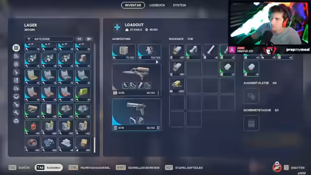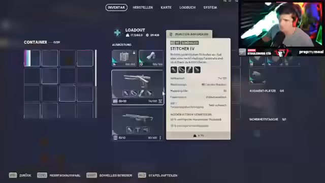 00:11:17Der Streamer begrüßt die Zuschauer am Sonntag und bereitet sich auf den Stream vor, indem er Essen in die Mikrowelle stellt und Kaffee kocht. Nach diesen kurzen Vorbereitungen kündigt er an, dass sie heute wahrscheinlich einige Prüfungen im Spiel absolvieren werden. Er stellt fest, dass er momentan alleine unterwegs ist, da die anderen Spieler nicht online sind. Bevor es richtig losgeht, muss er noch sein Inventar sortieren und Platz schaffen, da er zu viele Heilgegenstände und Desinfektionsmittel besitzt. Er überlegt, welche Gegenstände er verkaufen oder craften kann, um mehr Stauraum zu erhalten und Munition herzustellen. Dabei stößt er auf einen Bug im Spiel, der ihm fälschlicherweise anzeigt, keinen Platz zu haben, obwohl sechs Plätze frei sind. Nach Behebung des Problems kann er Munition herstellen und plant, weitere Gegenstände zu craften, um den Stash-Wert zu erhöhen.