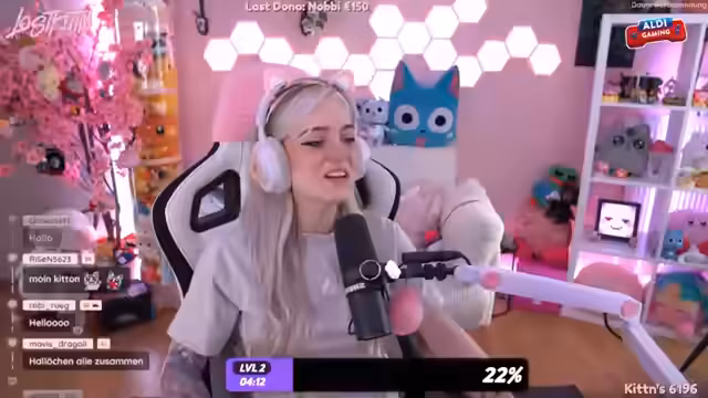 00:12:43Der Stream wird mit einem chaotischen Zeitmanagement eröffnet und persönlichen Kommentaren gestartet. Nach einer kurzen Unterbrechung für einen Post und dem Verlassen eines 'dummen Kobolds' begrüßt die Streamerin ihre Zuschauer, nennt Namen wie Mucks, Curry und Narocken und bedankt sich herzlich für Spenden und Unterstützung. Der Ton ist locker und die Stimmung ist gutgelaunt. Es folgen diverse Grüße und interaktionsspiele mit dem Chat.