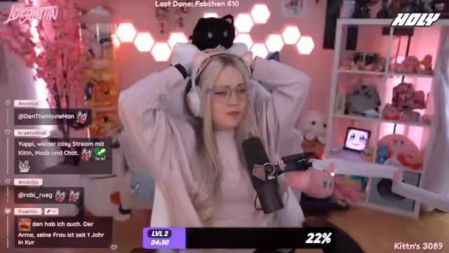 00:14:54Im weiteren Verlauf des Streams berichtet die Streamerin von ihrem entspannten Tag, der jedoch durch die Krallenpflege ihrer Katzen unterbrochen wurde. Sie schildert detailliert, wie stressig die Prozedur für ihre Katzen ist und welche Strategien sie anwendet, um sie zu beruhigen, wie das Anbieten von Leckereien und die Handhabung durch einen anderen Menschen. Anschließend wird auf einen weit verbreiteten Mythos rund um das Schneiden von Haaren oder Krahlen eingegangen, den sie klar widerlegt.