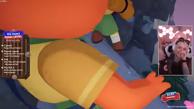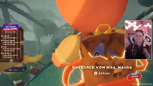 02:50:07Das finale Level des Aldi Gaming GG Hunt Events beginnt. Die sechs teilnehmenden Streamer, darunter Lost Kitten, begrüßen das Publikum. Der Moderator erläutert den genauen Ablauf: Die Gruppe muss vier verschiedene Spiele (Peak, Cuphead, Rayman Legends, Pico Park) parallel absolvieren, um Code-Fragmente zu sammeln und damit das finale 'Good Game für alle' freizuschalten. Dabei werden auf dem Aldi-Kanal große Preise an die Zuschauer verlost.