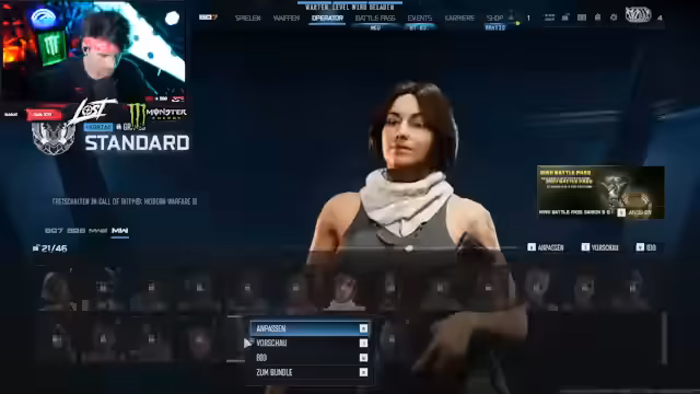 00:20:07Nach dem Spielstart konfrontiert das Spiel den Streamer mit ungewohnten Menüs und Einstellungen. Ein zentrales Thema ist die verzwickte und unübersichtliche Charaktauswahl, insbesondere die Suche nach dem Rambo-Skin, der sich als legendärer Operator herausstellt. Neben der Verwirrung beim Skin-Setup wird auch das technische Setup wie die Grafikoptionen und Mausempfindlichkeit angepasst. Die Rüstungs- und Plattenmechanik wird als neuartig und verwirrend empfunden, da es zwei separate Systeme zu geben scheint. Die ersten Waffenausschnitte zeigen ein visuell ansprechendes, aber technisch noch unfertiges Spielgefühl.