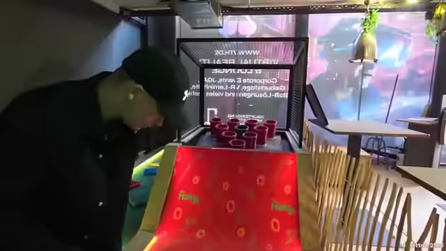 01:24:15Die Gruppe erreicht ihr Ziel und stellt fest, dass es dort auch eine Arcade World gibt. Sie entscheiden sich für Adventure-Golf und Axtwerfen. Adventure-Golf wird als 'extrem Sport' bezeichnet. Es wird angekündigt, dass sie gleich ins WLAN gehen müssen. Sie schalten auf eine 'Build Back Szene' um, um alles abzuklären. Es gibt Probleme mit dem Umschalten auf die 'Be Right Back'-Szene. Es wird vermutet, dass beide gleichzeitig auf 'Be Right Back' schalten müssen. Schließlich wird beschlossen, dass eine Person den Stream ausmacht, um automatisch in die 'World-Back-Szene' zu gelangen. Am Veranstaltungsort angekommen, werden sie von einem Mitarbeiter begrüßt, der ihnen die Regeln erklärt.