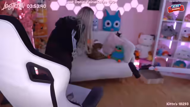 04:34:31Die Streamerin bedankt sich bei Jinxmi für eine Spende und betont, wie viel Leben die beiden Bengalkater in ihr Zuhause bringen, da diese viel Aufmerksamkeit und Hirnjogging benötigen. Sie spricht über die Notwendigkeit, den Katzen gerecht zu werden, da sie viel Aufmerksamkeit brauchen und schnell gelangweilt sind. Happy hat sie enttäuscht angeschaut, weil sie ihn nicht gestreichelt hat. Sie erwähnt Überlegungen zum Aufstellen eines Kratzbaums und erklärt, warum es keine feste Catcam gibt, da dies zu riskant wäre und die Katzen es möglicherweise nicht mögen würden, wenn man eine Kamera an ihnen befestigen würde. Sie imitiert, wie Happy gemeckert hat, weil er nicht mehr Essen bekommen hat, als er sollte. Die Streamerin krault Happy und kommentiert seinen dicken Bauch.