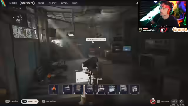 09:15:01Im medizinischen Labor wird über die Herstellung von neuen Items wie Spritze und Desinfektionsmittel gesprochen, was fehlende Schlüsselteile erfordert. Der Streamer tauscht Waffen aus, etwa eine Torrente gegen eine stärkere Alternative. Da der Raumhafen bald geschlossen wird, wechseln sie das Ziel zu 'Blaues Tor', wo derzeit 'Blutezeit' stattfindet. Die Priorität liegt darauf, mit vollständiger Ausrüstung und ausreichend Schild und Heilung in die nächste Runde zu starten.