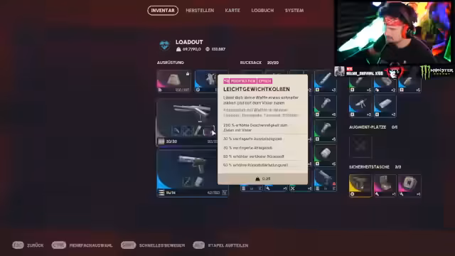 10:17:38Zu Beginn des Stream-Segments wird das Inventar-System des Spiels detailliert erläutert. Es wird die Herausforderung beschrieben, dass der Rucksack und der Stash schnell voll sind, was zu ineffizientem Stacken von Gegenständen führt. Es wird ein Quickbutton erwähnt, der genutzt werden kann, um Platz freizumachen, aber dieser ist erst dann effektiv, wenn bereits vorsortiert wurde, da andernfalls wichtige Gegenstände übergestapelt werden könnten. Streamer berichtet von einer überwältigenden Menge an Items, die zu ständigen Sortierprozessen zwingt und das Gameplay hemmt. Zusätzlich werden Kampfmechaniken wie Aim-Punch und die Genauigkeit von Level 1 Waffen thematisiert, die als reizend und frustrierend beschrieben werden.