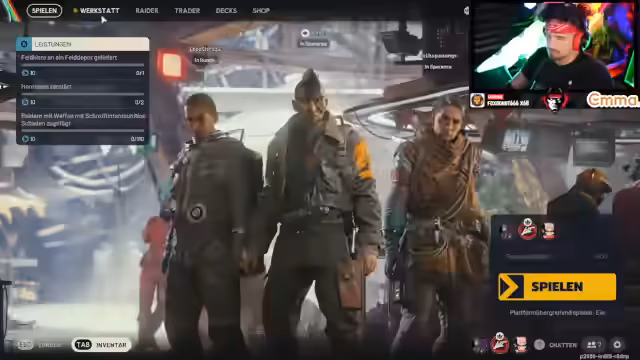 00:10:47Nach dem Start begrüßt der Streamer die Zuschauer und stellt die wichtigsten Inhalte des heutigen Streams vor. Im Fokus stehen die neuen Events, die seit kurzem im Spiel aktiv sind: Elektromagnetische Stürme, Night Raids im Blauen Tor und das neue Versteckte Bunker-Event im Raumhafen. Besonders das Bunker-Event wird als Hauptziel der aktuellen Runde genannt, das durch Aktivieren von Antennen zugänglich gemacht werden muss.