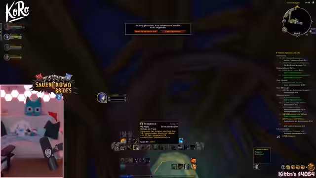 08:42:20Während der Levelling-Phase stellt die Streamerin fest, dass der ursprüngliche Plan mit der Flugroute nach Goldhain Lücken aufweist. Ein neuer, klarer Plan wird formuliert: Level 10 erreichen, Hogger-Quest in Westfall abschließen, im Gasthaus einen Ruhstein platzieren, nach Sturmwind porten, die Lernwander-Quest machen und anschließend zurück zum Krabben-Spawn. Gleichzeitig stört der Chat-Overlay das Sichtfeld auf die Lebensleiste des Begleiters.