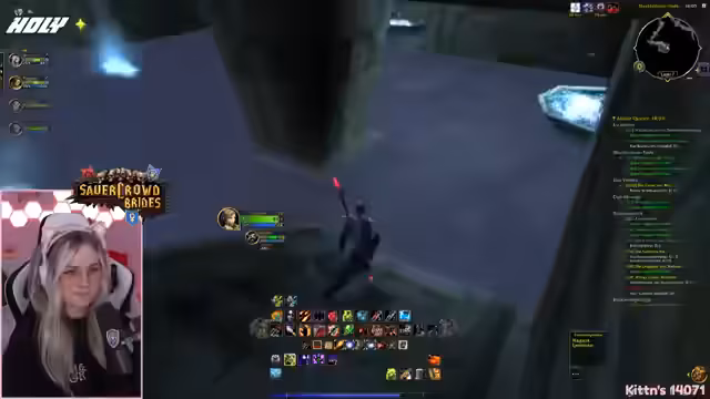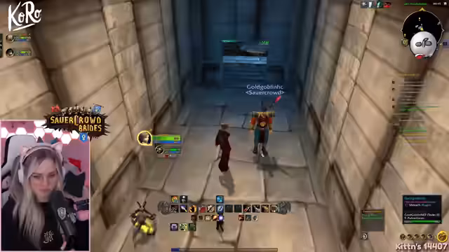 07:13:46Der Stream konzentriert sich voll auf das Levelling im WoW Hardcore-Modus. Es wird eine Methode entwickelt, bei der der Begleiter durch Einzelmobs zieht und sie auf 60% reduziert, bevor die Streamerin sie mit einem finalen Schlag tötet. Die Effizienz dieser Methode wird diskutiert, als ein unerwarteter Tod eintritt. Die strategische Nutzung von Ports und die Planung der nächsten Quests, insbesondere für den Hexer in Sturmwind, werden besprochen.