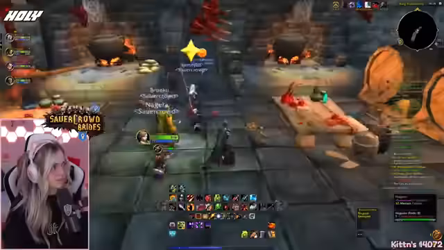 01:05:00Die Gruppe begibt sich in den Dungeon Blackfathom Tiefen, wo sie auf verschiedene Mobs und einen Boss stoßen, der einen Debuff verursacht. Die Streamerin und ihre Mitspieler arbeiten gut zusammen, wobei sie hauptsächlich als Heilende agiert und für den Gesundheitsspenden der Truppe sorgt. Es wird ein Problem mit Platzmangel im Inventar thematisiert, da größere Taschen benötigt werden, und die Gruppe agiert sehr koordiniert, um den Dungeon erfolgreich zu meistern.