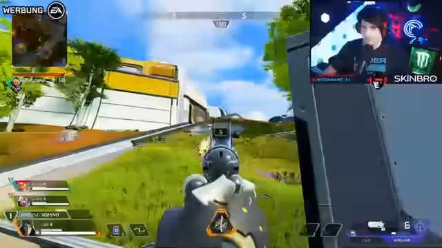 00:54:53Zu Beginn des Streamings wird ein ungewöhnlicher Modus getestet, der an Gun Master erinnert. Der Streamer ist vom Spielstil und den Mechaniken überrascht und findet sie interessant. Dabei wird das Matchmaking-System von Apex Legends gelobt, da es als sauber und effektiv beschrieben wird. Im Gegensatz zu anderen Battle-Royale-Spielen, wo man in Lobbies wartet, ist hier alles schnell und unkompliziert organisiert. Man kann direkt nach einer Runde die nächste starten, sieht das eigene Team und kannCharakterauswahl treffen.