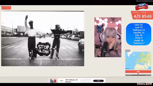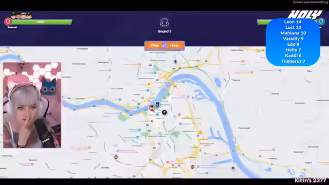 01:13:17Nach einer gemeinsamen Verabredung beginnt lostkittn mit GeoGuesser-Spielen auf der Plattform Bonjivor. Sie erklärt das Prinzip und spielt auf klassischen Karten, wobei sie versuchte, anhand von Straßenschildern, Gebäuden und Umgebungsmerkmalen den Standort zu erraten. Der Spaß und die Herausforderung stehen dabei im Vordergrund, wobei sie auch regelmäßig mit dem Chat interagiert und deren Hilfe bei der Lokalisierung sucht.