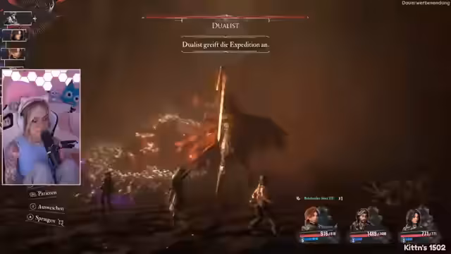 02:29:56Im Stream werden komplexe philosophische Gedanken geteilt, die über das Spiel hinausgehen. Es wird die Beziehung zwischen Licht und Dunkelthem sowie das Konzept der Führung thematisiert. Das Gameplay konzentriert sich auf das Navigieren durch anspruchsvolle Parcours und den Umgang mit aggressiven Feinden. Der Streamer kämpft gegen mehrere Gegner, die mit starken Gradient-Angriffen und Selbstdarstellungen auf sich aufmerksam machen. Die Kämpfe erfordern präzises Ausweichen und die Nutzung von Fertigkeiten wie dem Gradient-Konter, um Schaden zu verhindern und Feinde zu besiegen.