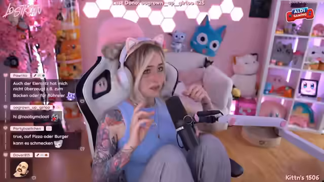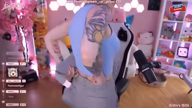 00:06:50Nach dem technischen Start des Streams begrüßt die Streamerin die Zuschauer. Sie liest die Namen einiger langjähriger Unterstützer vor und gibt Einblicke in ihre Garderobe, die sie sich in Amsterdam gekauft hat. Ihre Hose und ihr Oberteil von Uniqlo werden detailliert besprochen, wobei sie über das Material, die Passform und ihre Körperform spricht.